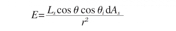 θ1 and θ2 are the angle between the normal of the emitting surface dAs and the illuminated surface dA and the r direction, respectively.