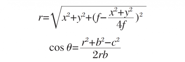 Putting equations of the expressions of r, cos θ, b and c into equation above, we have: